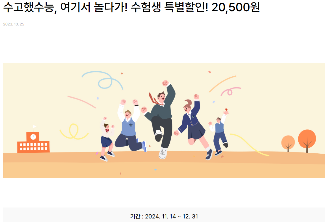 수험생 여러분, 이 할인 혜택으로 누구보다 특별하고 즐거운 시간을 만들어 보세요! 🎉